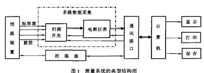 熱電偶、熱電阻自動(dòng)測(cè)量系統(tǒng)的種類很多,它可以是一體化的,也可以是由若干部件構(gòu)成的。典型結(jié)構(gòu)如圖1所示。